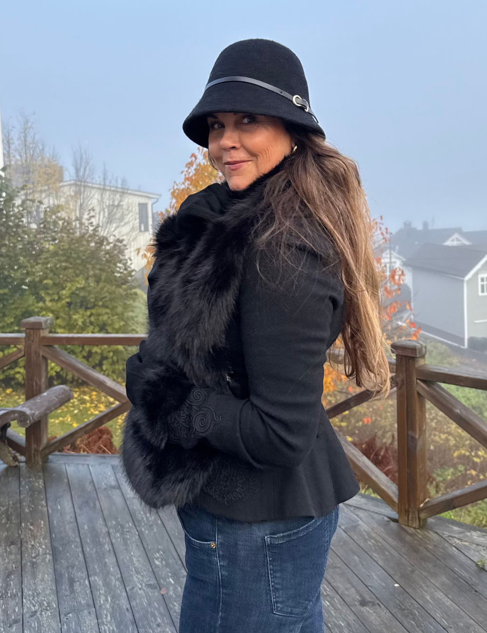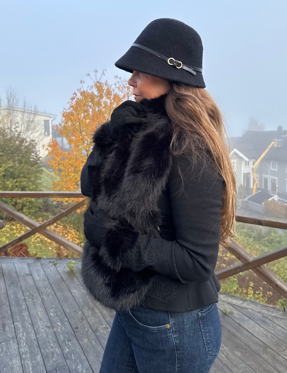 Bøttehatt i 100% ull med en lenke i leatherlook for å fullføre looken.