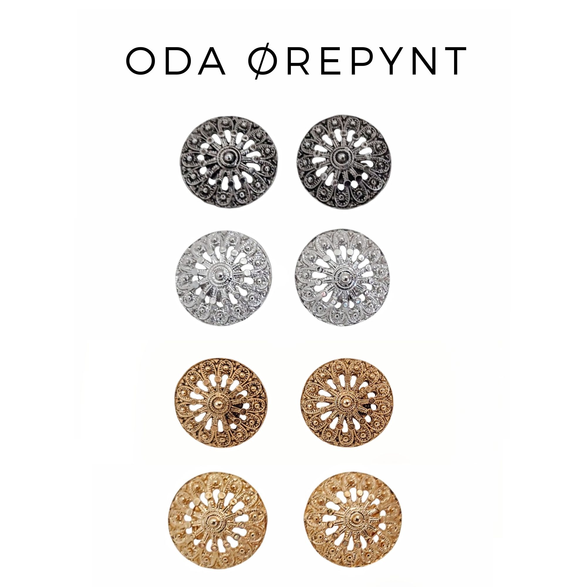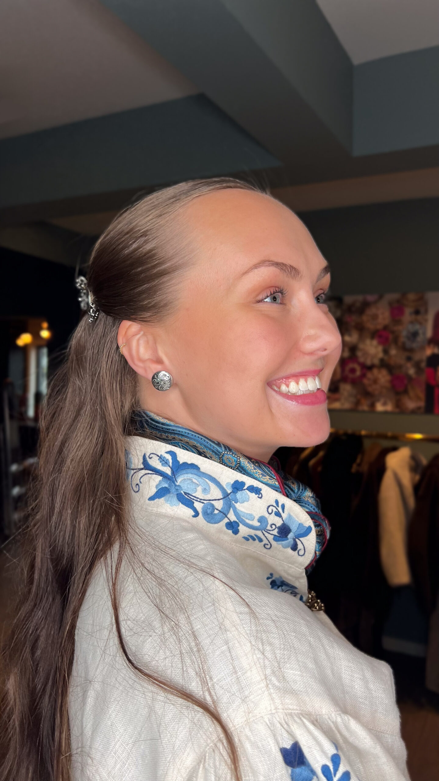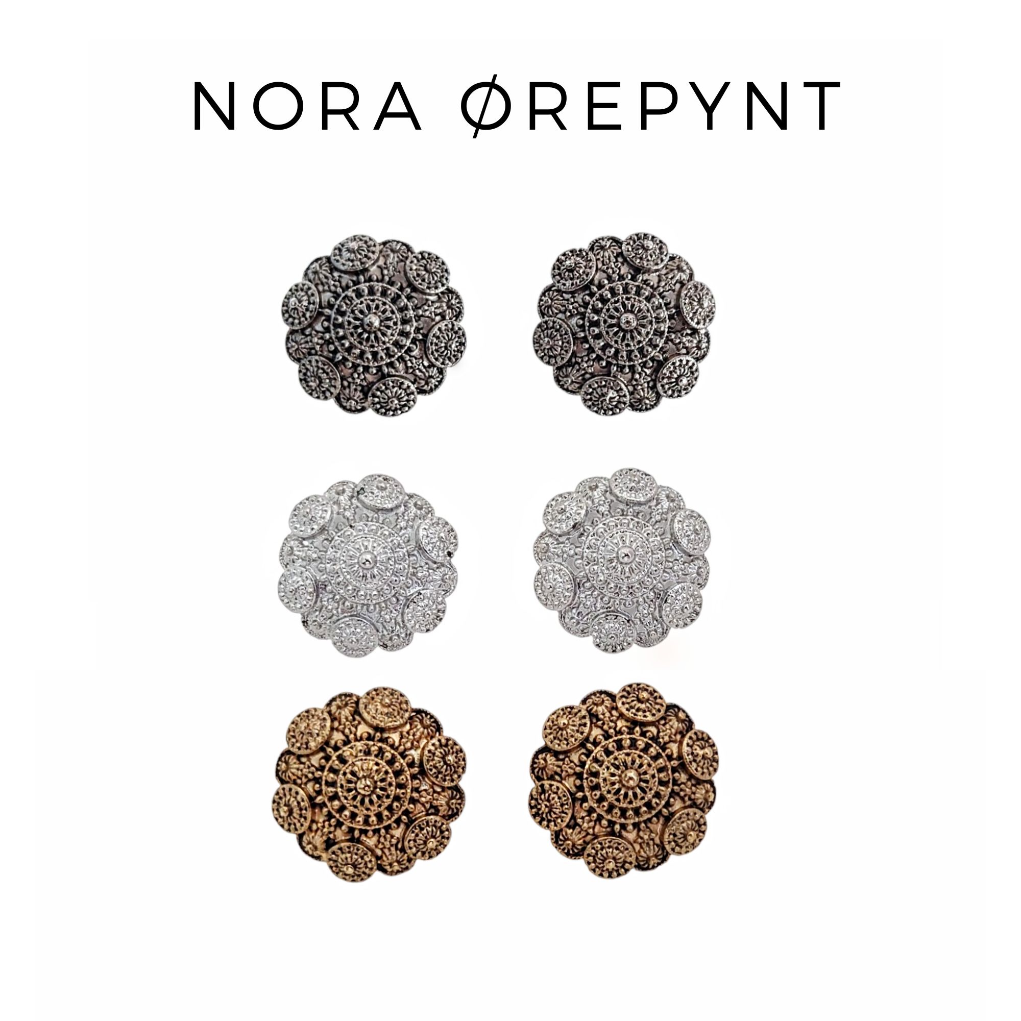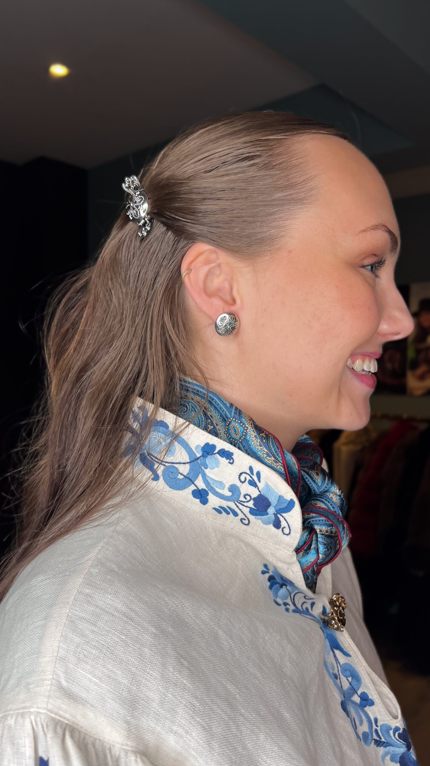 Noma`s egne ørepynt i nikkelfritt sterkt stål. Designet for å passe våre nydelige bunader, stakker og festdrakter. Ørepynten har samme design som våre populære bunadshårklyper.