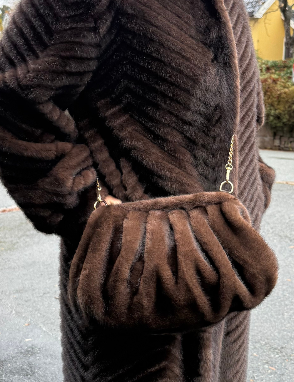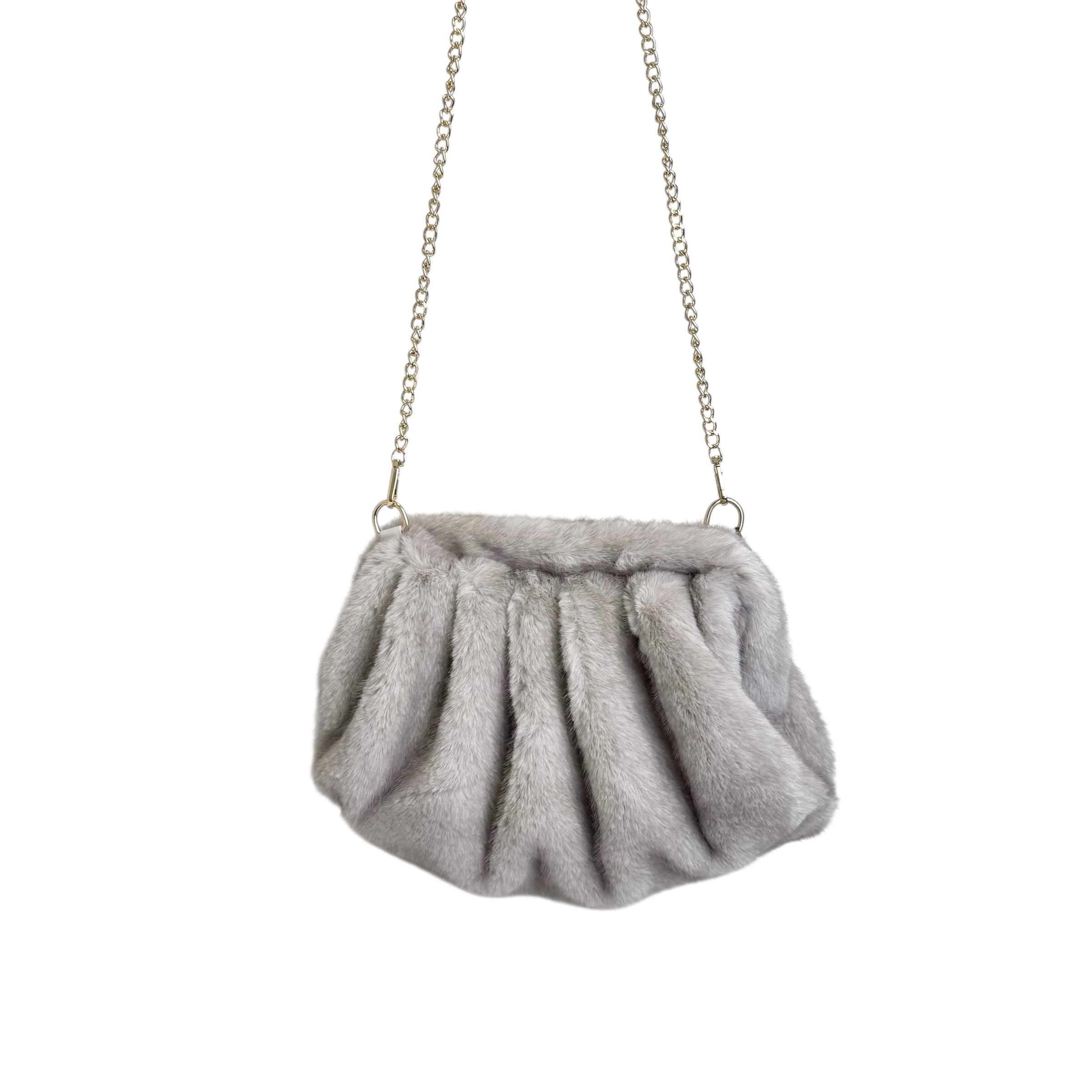 Denne partyvesken blir din nye favoritt! Her har du en lekker clutch i fuskepels med gullenke om man ønsker å ha den over skulderen. En relativt stor clutch der du får plass til alt du trenger.