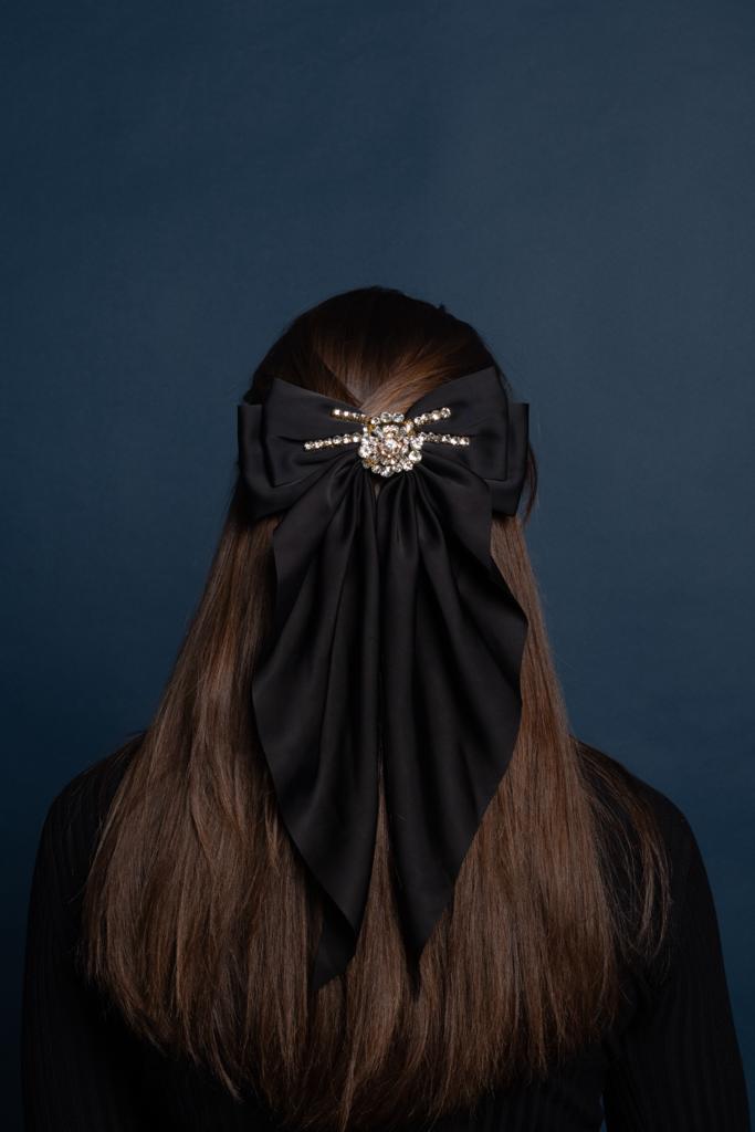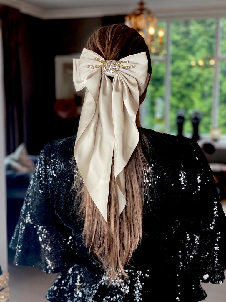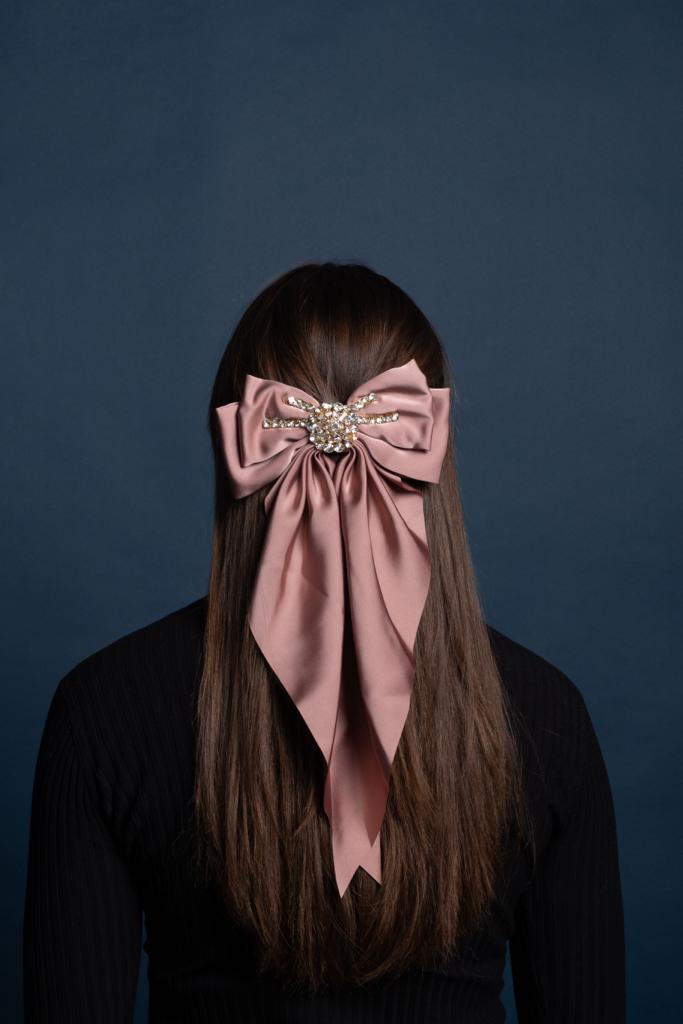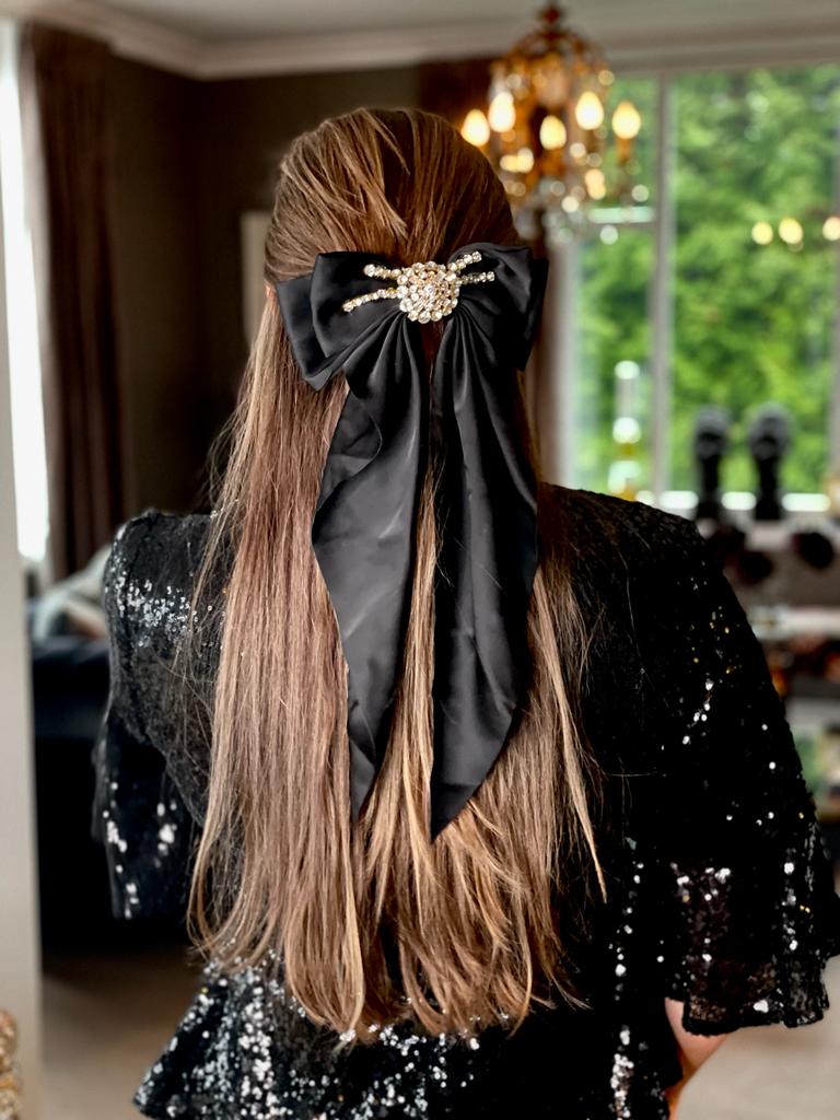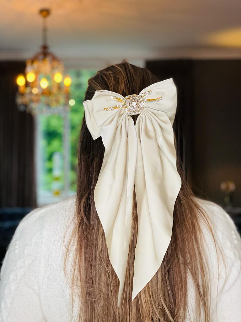 Nydelig sløyfe hårspenne i silke look med lekker dekor.