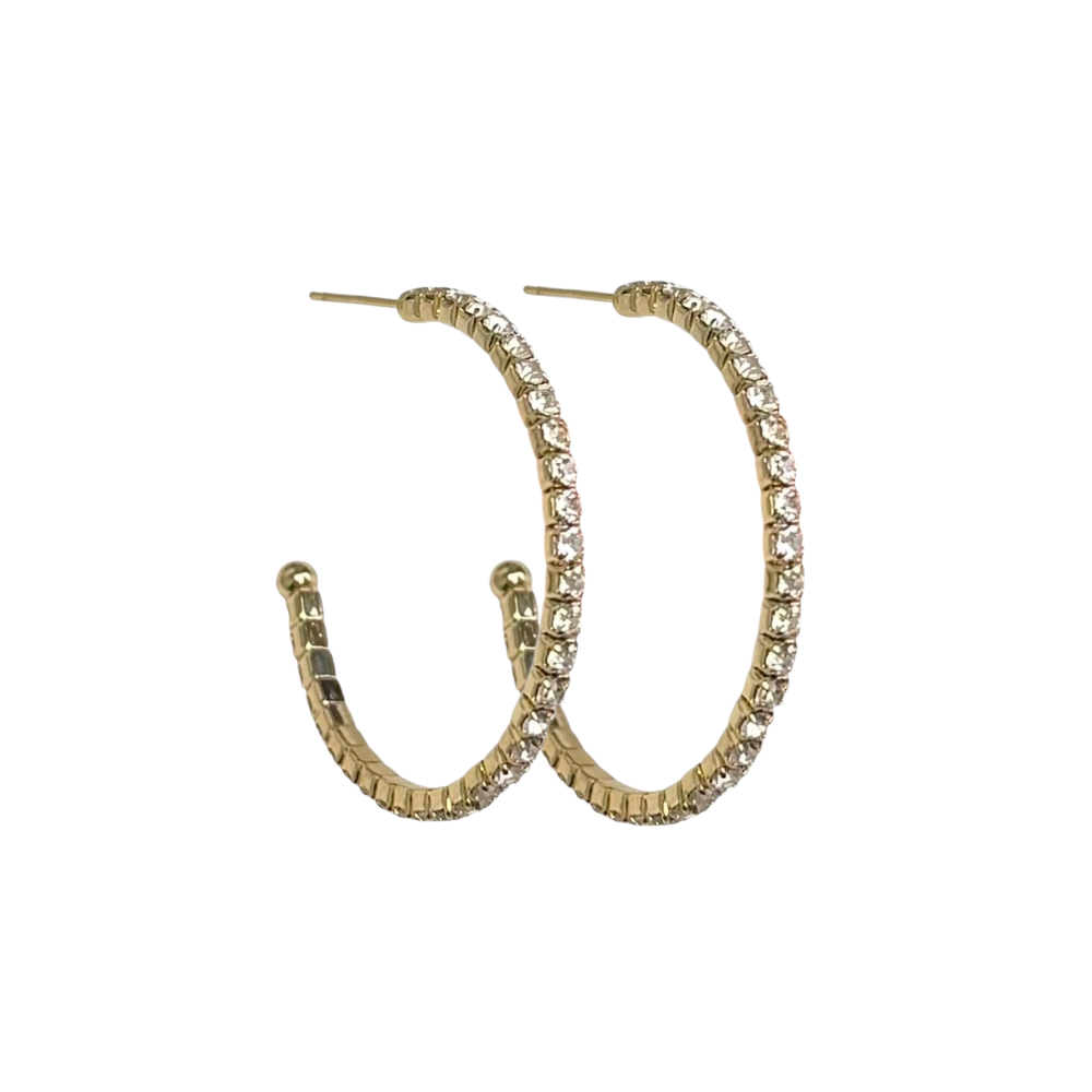 Dette er store og overdrevne hoops med mange små stener! Perfekt til party og glam. Disse er ekstremt lette og tøyelige, og vil derfor være perfekte å ha på en hel kveld.