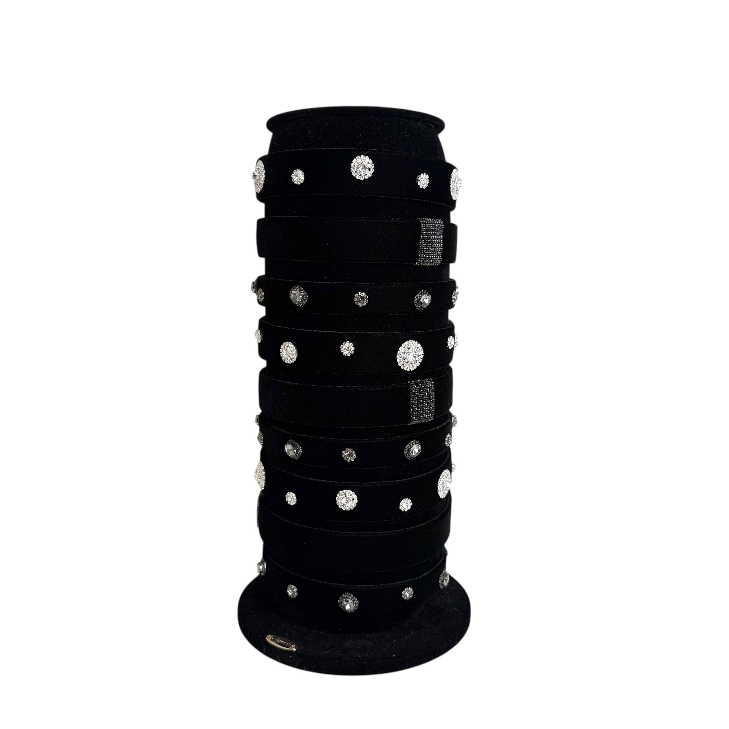 Disse håndlagde hårbøylene fra Korea er våre nyeste eksklusive julekolleksjon. I speilfløyel og med stener og strass er de lekre, tidløse og perfekt til julebord eller julekjolen.