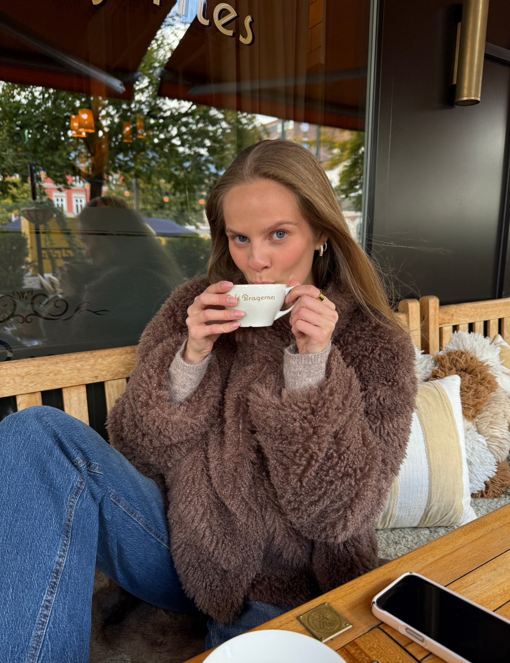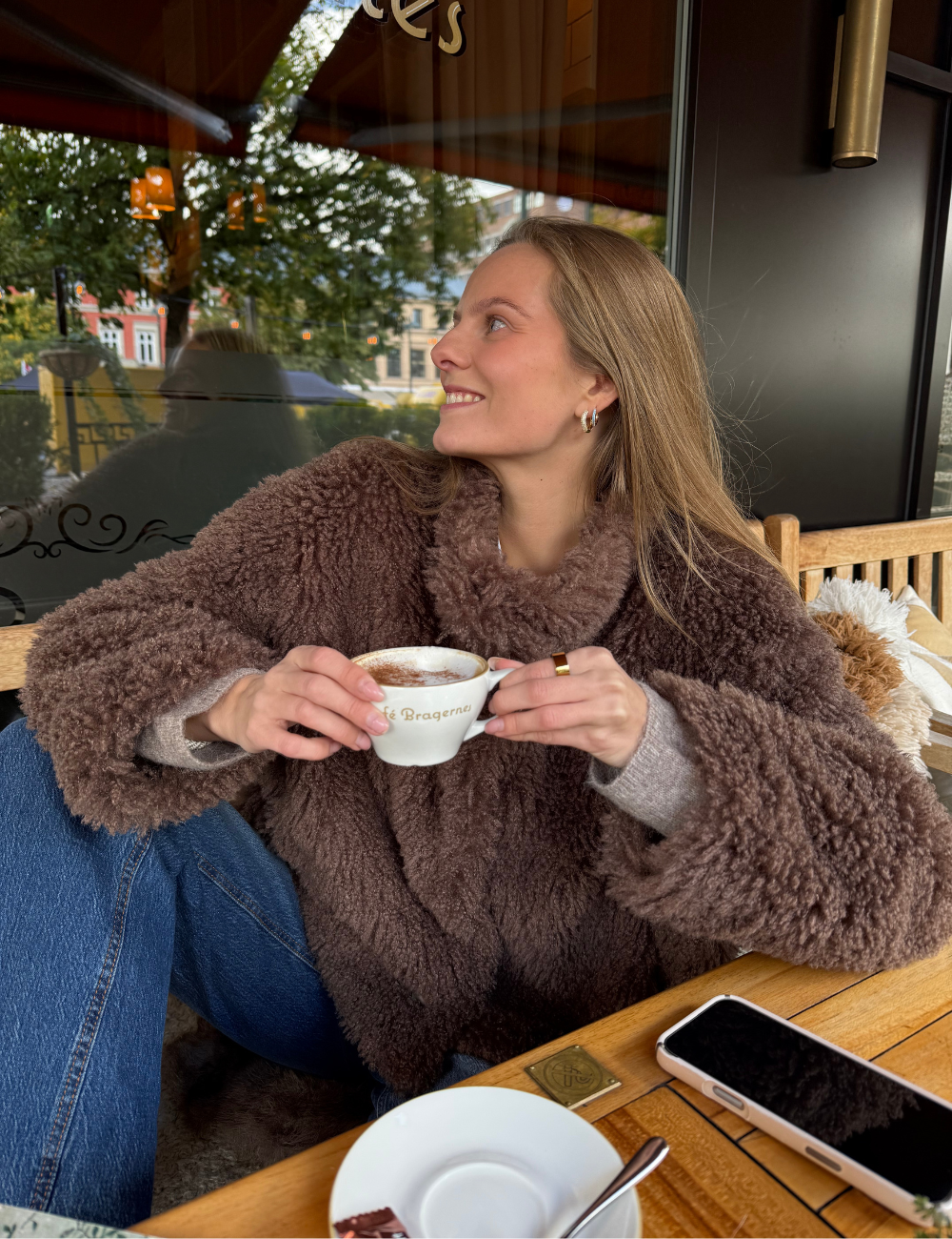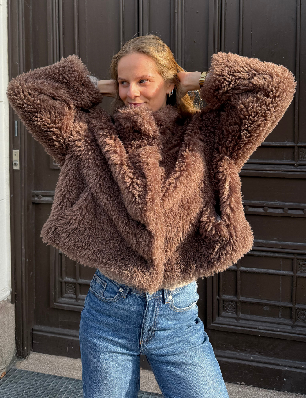 Denne jakken i fuskepels er en litt ny vri på vår elskede fuskepels. Fuskepels jakke er noe vi elsker, og denne er intet unntak. En røff og kul jakke med knapper langs hele. Med en stor krage og oversized look er dette garantert din nye favoritt.