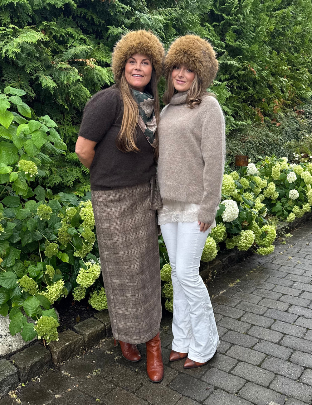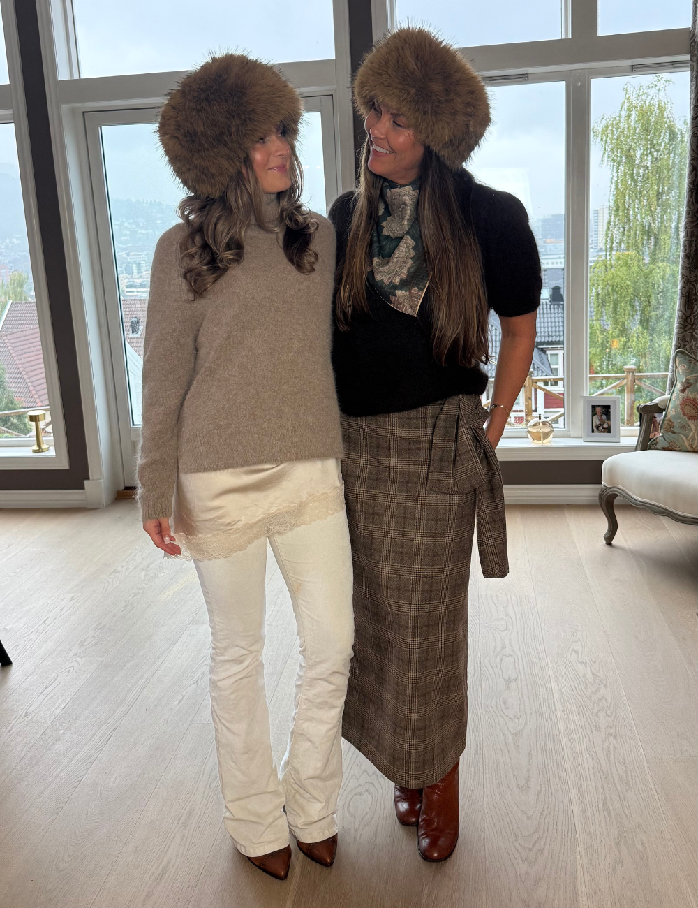 På bildene har Elise på seg luen, og Trine på seg pannebåndet.