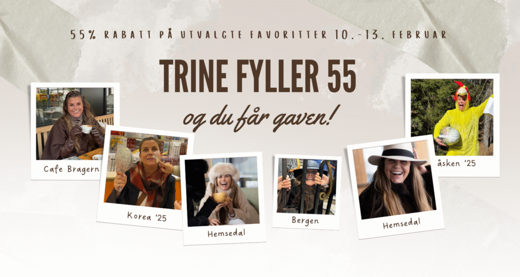 10. februar fyller jeg 55 år, og i den anledning har jeg plukket ut mine favoritter. Så nå får du hele 55% rabatt på produktene under! I hele tre dager har du mulighet til å shoppe disse favorittene <3